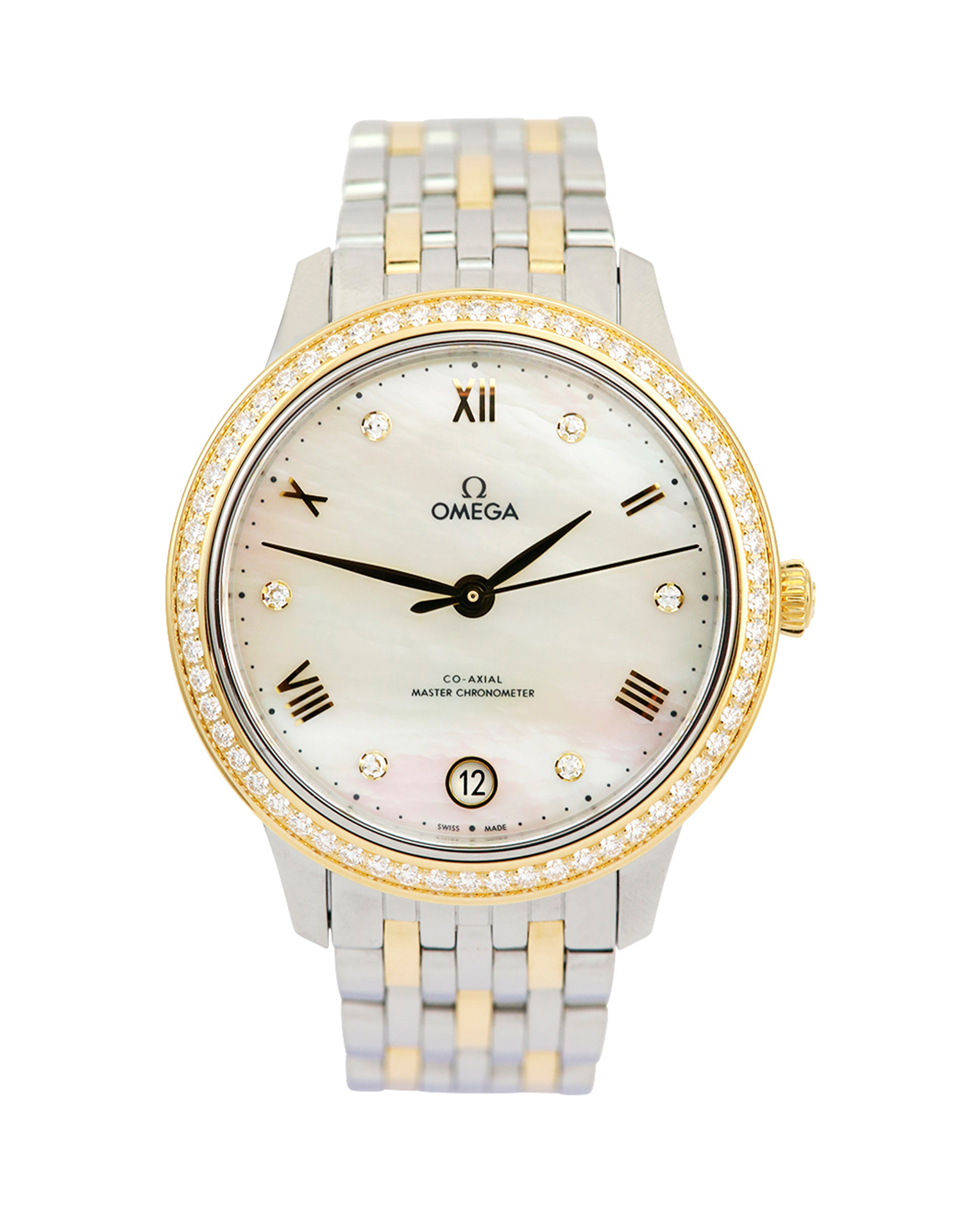 This Omega De Ville Prestige 434.25.34.20.55.002 has a mother of pearl white - diamond dial and a bracelet strap. This Omega has undergone a thorough inspection of accuracy, functionality and condition at our Omega certified service centre to determine the level of reconditioning required to meet our strict standards. It has also been checked against our records to ensure authenticity. Our watches have a 24-month warranty for your peace of mind, in conjunction with any remaining manufacturer’s warranty from new or from service.